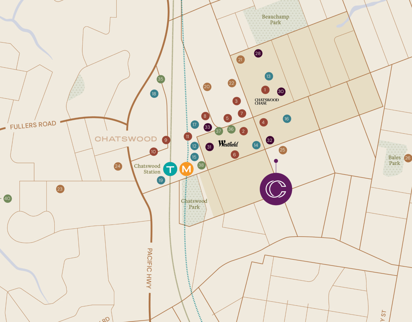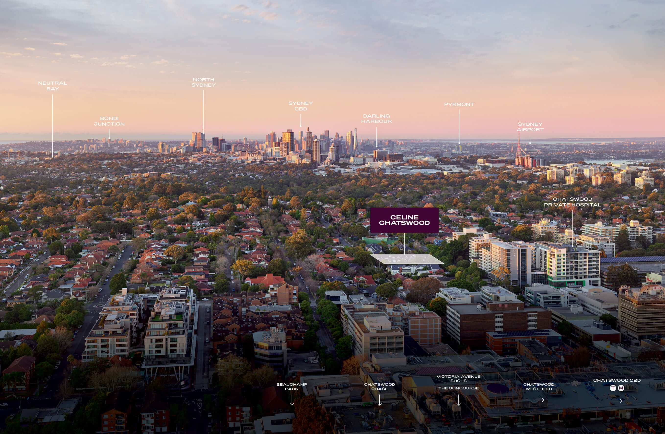 Explore the neighbourhood that surrounds Celine, from major retail destinations and transport links to parks, dining and everyday essentials. With everything mapped in context, it’s easy to see how connected living in Chatswood becomes part of your daily routine.